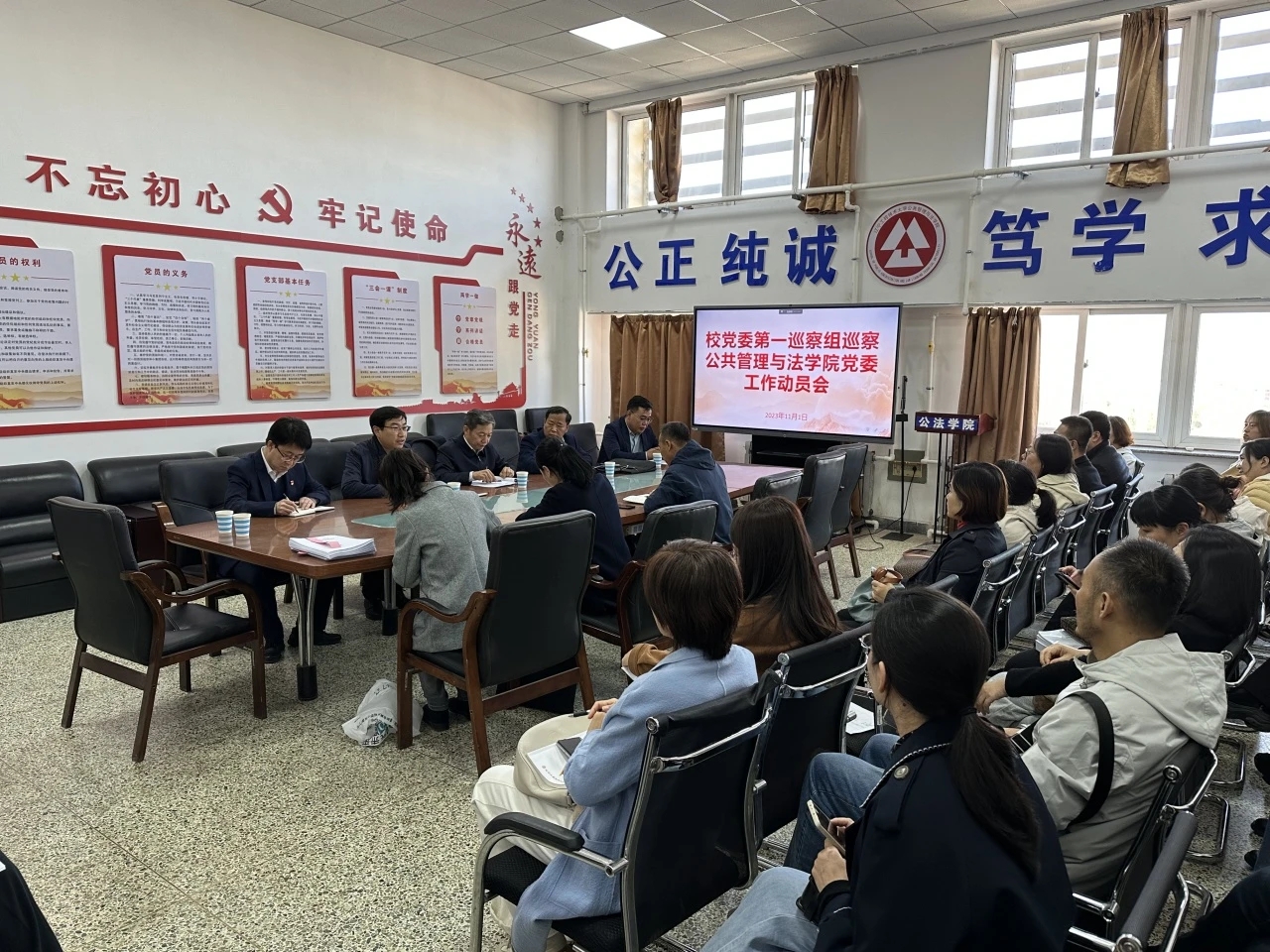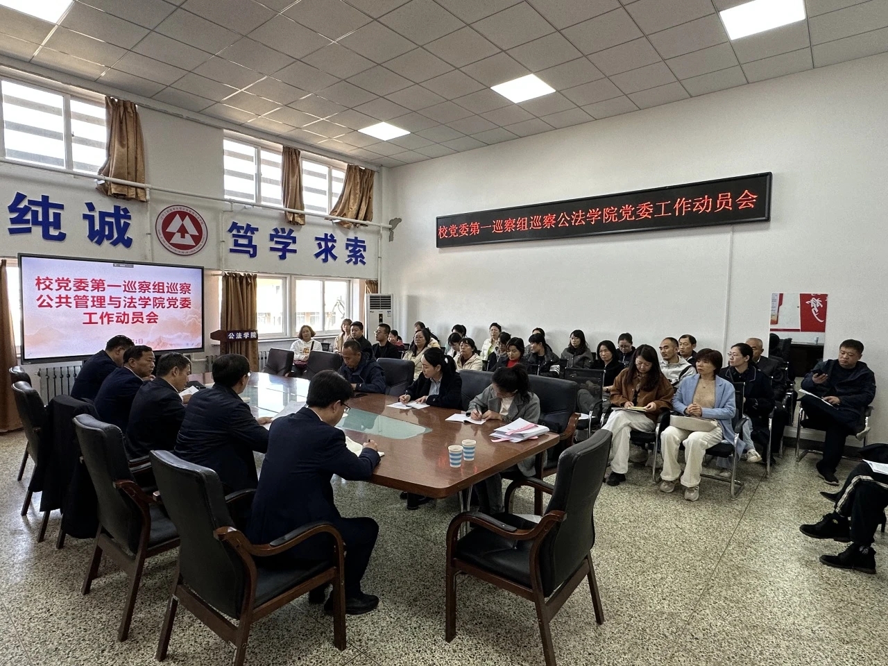 党委书记于海军、院长杨秋生的见面沟通会,通报了有关工作安排。动员会上,肖文学组长作了动员讲话,对做好巡察工作提出要求。