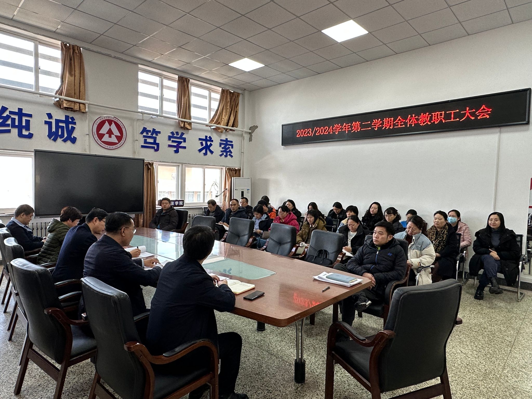 于博雅楼1008会议室召开全院教职工大会,传达学习贯彻学校第四次党代会精神。