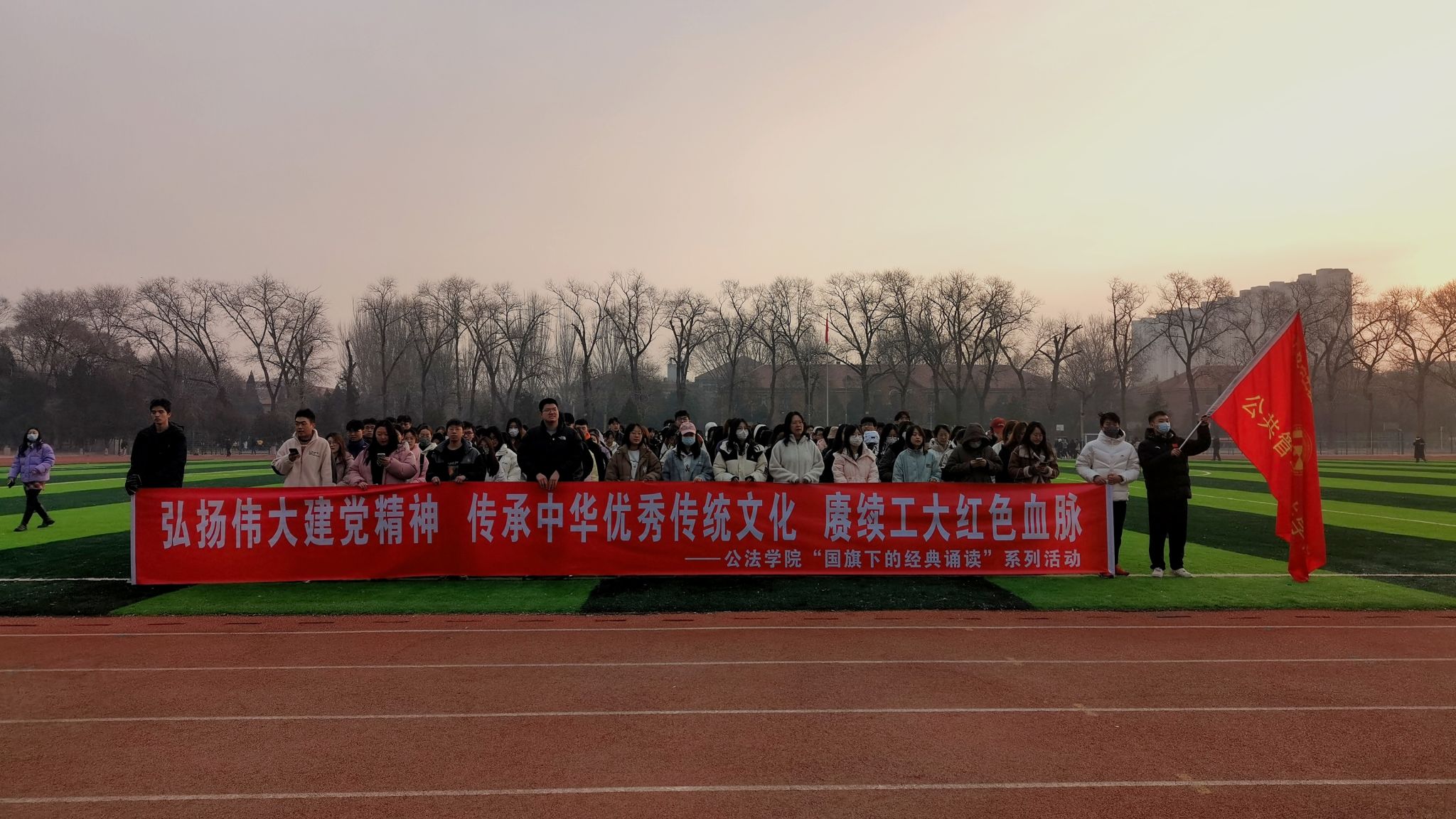 举行了“弘扬伟大建党精神 传承中华优秀传统文化 赓续工大红色血脉——国旗下的经典诵读”活动。本次活动诵读的篇章是《将进酒》,激励同学们不论生活如何,都应该怀揣感恩之心,珍惜眼前,坚定向前,努力成长为担当民族复兴大任的时代新人。