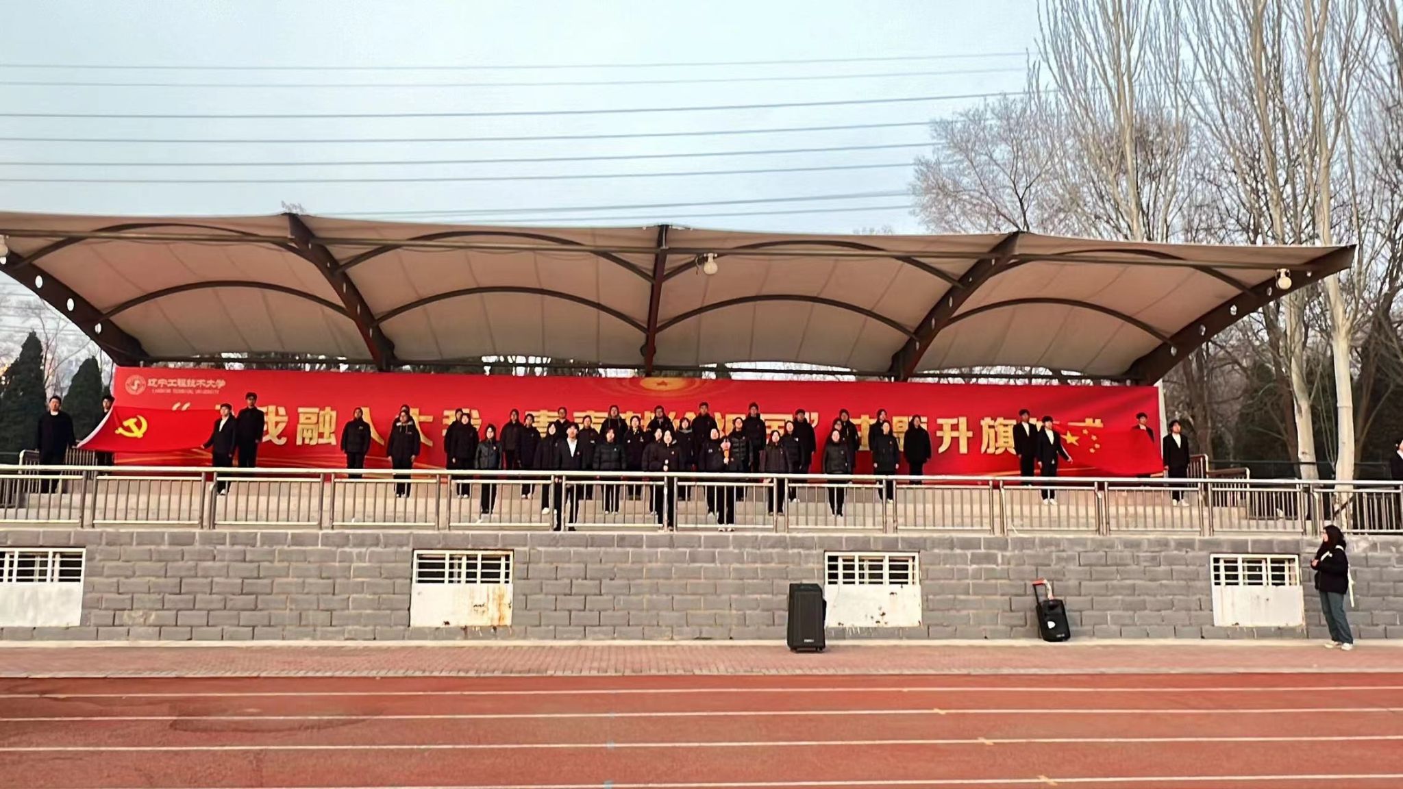 在中华路校园操场举办“小我融入大我 青春献给祖国”主题升旗仪式,学校全体辅导员、学生党员和2022、2023级全体学生参加了本次活动。