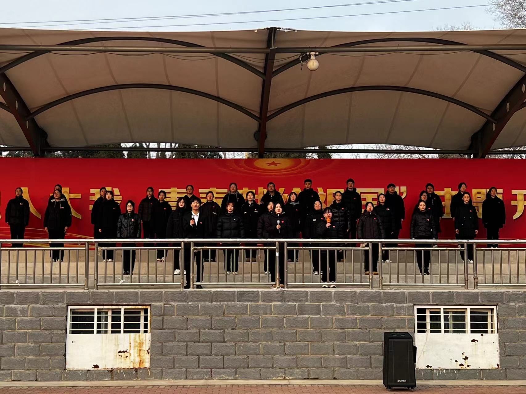学生代表进行主题为《我的祖国》国旗下演讲,赞美祖国的大好山河和优秀的传统文化,表达对祖国的热爱和对新时代“六地”建设的壮志。接着一首《上春山》展示了同学们勃勃生机与无尽活力,体现了积极向上、充满希望的人生态度;《永远为你创造辉煌》的校歌,更是唱出了青年学子为学校发展不断拼搏创新的豪情。