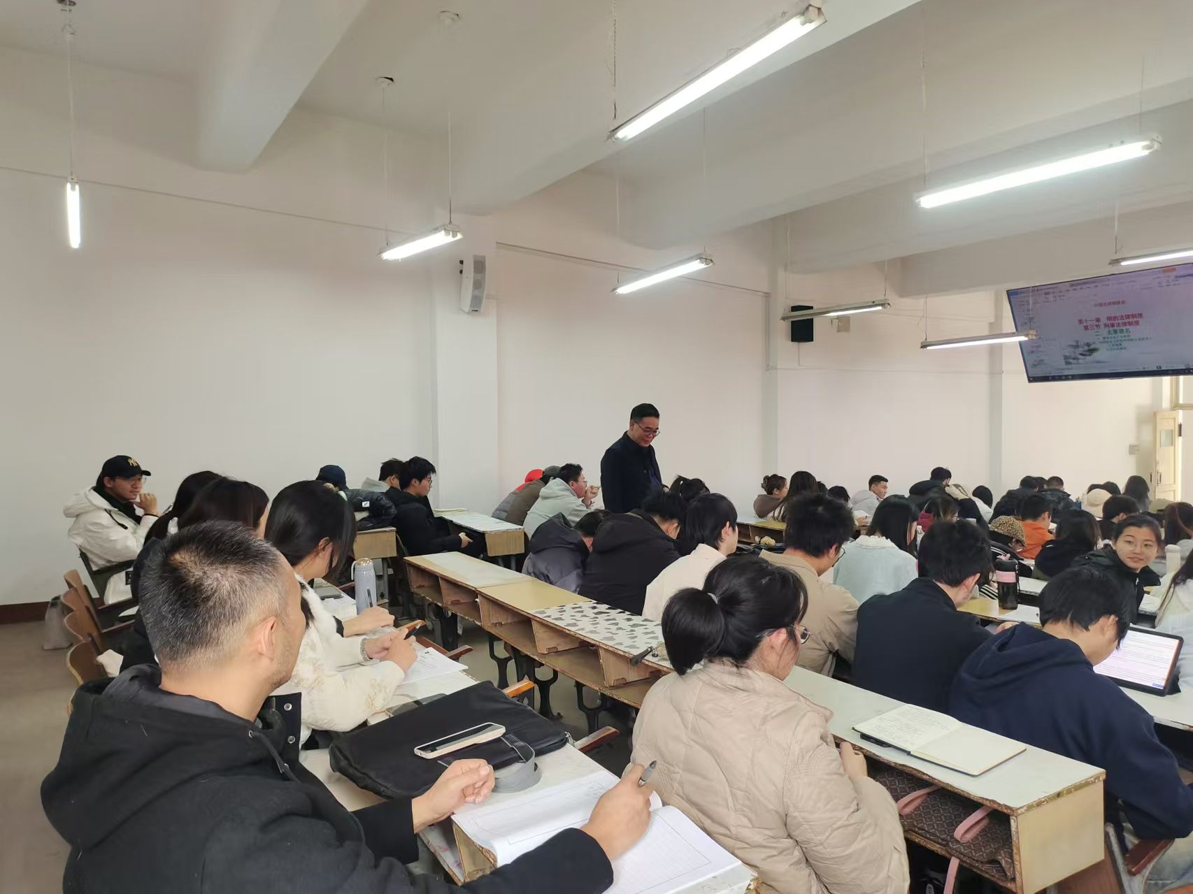 杨秋生教授以深厚的学术造诣和丰富的教学经验,为学生们呈现了一堂精彩纷呈的课程。在课堂上,他旁征博引,将复杂的中国古代法律制度讲解得清晰透彻,使学生们沉浸在知识的海洋中。此次集体观摩活动旨在促进教师之间的教学交流与学习,提升整体教学质量。参与观摩的教师们认真倾听、仔细记录,课后还围绕数字媒体技术应用、课程思政等方面进行了深入交流。