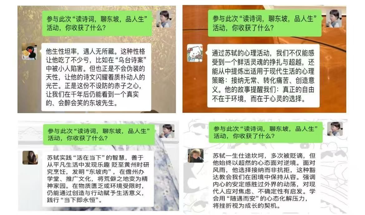 最后,活动在同学们“老夫聊发少年狂”的齐诵中走向结束,在渴望报国的壮志豪情中一场与东坡的对话暂告段落,但那份“在烟火人间修一颗澄明之心”的智慧,值得每位同学始终学习。