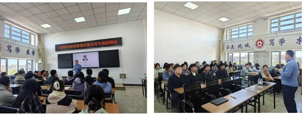 之后华兴财务管理团队副总刘湘鹏对公司整体情况以及岗位需求情况进行了详细地介绍,同学们也针对感兴趣的问题与用人单位进行了互动。紧接着我校优秀校友、华兴财务业务总监张博雅和团队成员先后开启两个场地进行现场招聘。经过两个半小时的现场招聘,目前有5人达成初步意向,1人有明确意向。
