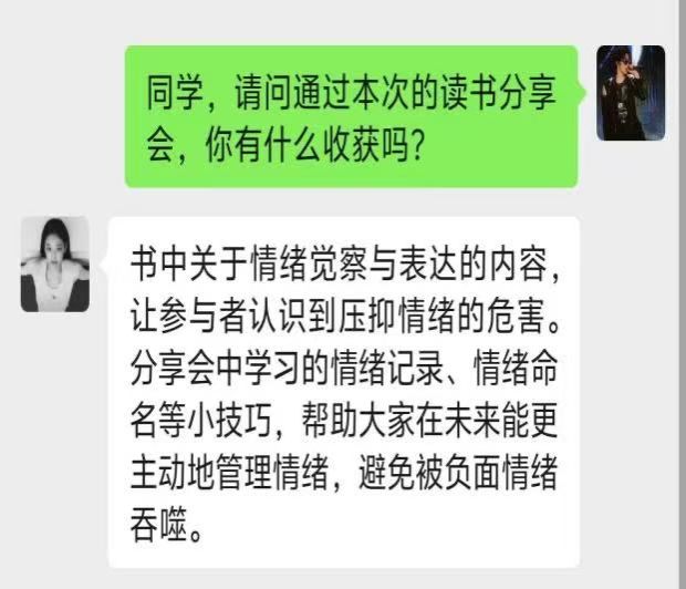 活动伊始,陈薇薇老师以书中蛤蟆先生的抑郁与迷茫为引子,抛出问题:“阅读这本书的收获是什么?”引发同学们激烈讨论。她结合书中角色和内容提炼出一些关键词带领学生们共同探索。老师结合书中的“儿童自我状态”与“父母自我状态”,剖析原生家庭对行为模式的影响;结合“人生坐标”理论,理解自我与他人的关系,建立健康人际边界。陈薇薇老师分享道“心理咨询并非‘治病’,而是帮助个体找回内心的力量。需要当事人的主动配合。”蛤蟆先生的蜕变告诉我们,真正的改变始于自己想要改变的愿望。