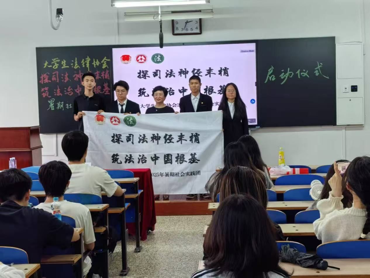 最后,李老师向实践团队代表授旗,这面旗帜象征着 “法治使命” 的传递,团队成员以热烈掌声回应这份责任并合影留念。