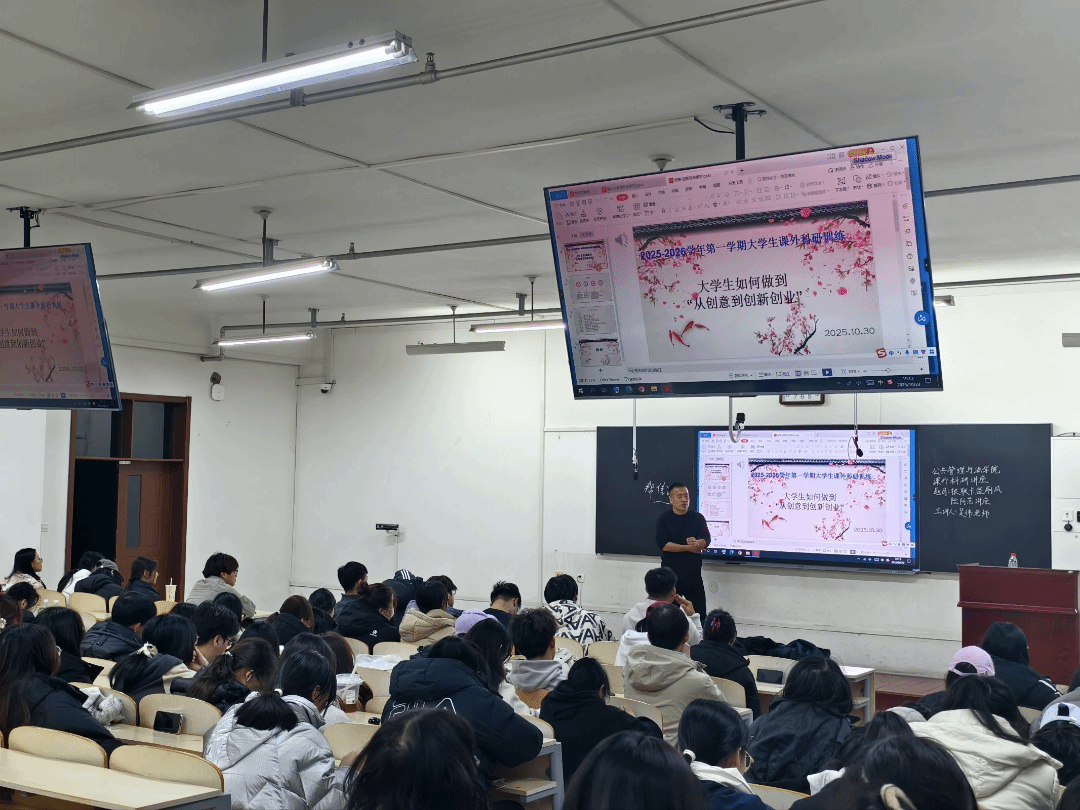 讲座现场,吴伟老师首先强调了“创意转化为创业项目”的核心价值,鼓励同学们挖掘自身想法的落地潜力;随后,他结合实际案例,拆解了从市场调研、资源整合到团队搭建的全流程逻辑,清晰呈现了创新创业的实践路径;针对“创意如何适配市场需求”这一问题,吴伟老师通过互动问答,帮助同学们梳理了项目打磨的关键方向;最后,他还分享了创业初期的避坑技巧,为有实践意向的同学提供了实用参考。现场氛围活跃,同学们结合自身对创新实践的困惑与思考,与老师展开交流互动,不少同学在现场记录要点,不时与身旁同伴交流想法,让讲座的内容在互动中进一步深化理解。