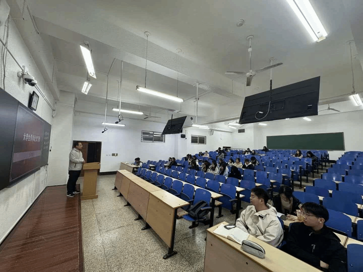 王洪涛老师担任主讲,财务管理、行政管理、法学专业百余名学生齐聚一堂,共享这场学术盛宴。