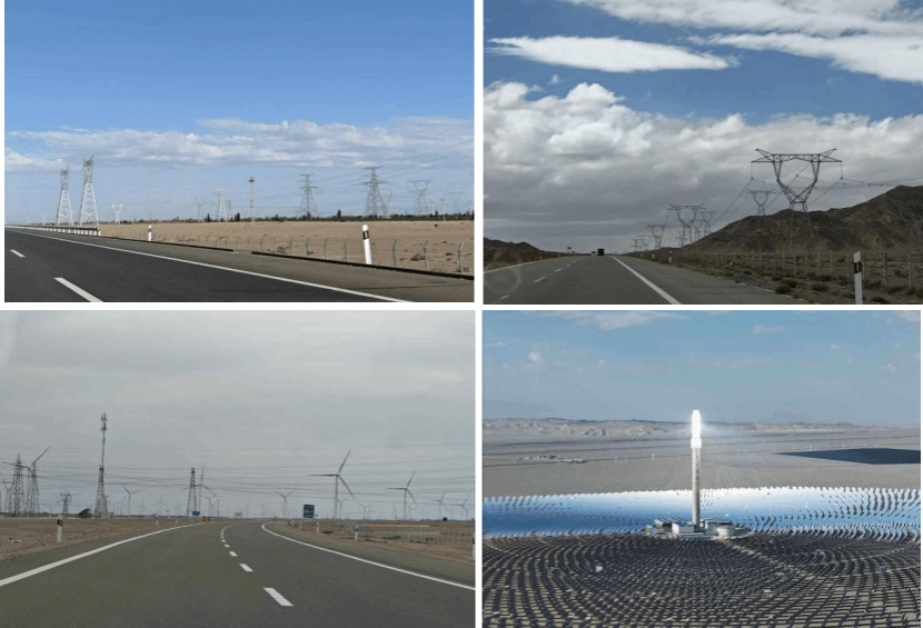 然而,一路美景过后最让我印象深刻的不是名山大川、不是壮秀美景,而是横跨东西的高速、环绕沙漠的铁路、翻越天山的回家路、蜿蜒曲折的扶贫路、延伸至帕米尔高原腹地的友谊路、保障勘探与建设的石油路以及数不清的铁塔……这一条条路或蜿蜒盘亘或直插腹地或空守高原或黄沙为伴,连接了祖国东西、天山南北。它们像一根根血管,不断地输入和输出,源源不断地促进物资周转、循环,促进了占国土面积六分之一土地的新疆的经济发展,彰显着中国力量的强大、民族精神的伟大。