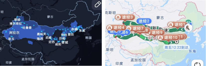 从东北一路向西,过了张家口便行驶在G7京新高速上,过了巴彦淖尔路上车流明显减少,很快便驶入了茫茫戈壁,随之而来的是驶入无人区的警示牌,因此这条高速被网友称为最孤独的高速公路。G7京新高速,是连接北京与乌鲁木齐之间的一条高速公路,是国家耗资370亿元打造的“荒漠天路”,是国家西部大开发计划的一条重要通道,是中国一带一路计划重点工程之一,全程2540千米,贯穿6个省区市,将北京到乌鲁木齐的距离缩短了1300余公里。这是一条穿越戈壁沙漠的高速公路,沿线环境十分恶劣,不仅会穿过多个戈壁荒漠,还会路过湿地、草原,包括山地、无人区等复杂地形。高温缺水,没有电、没有手机信号,恶劣的自然天气对施工工人的身心都是极大的考验。施工工人甚至在极端情况下用点狼烟的方式进行交流,在高温施工环境下连续2个多月无法洗澡。然而,这条路的通车,大大促进了东西经济的发展,结束了新疆网购不包邮的历史,也带动了西部旅游的热潮。