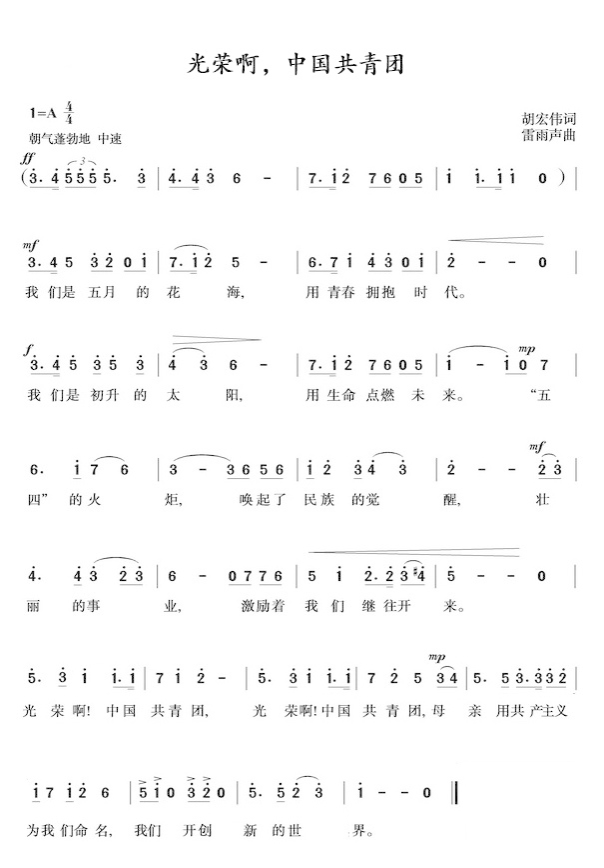 中国共产主义青年团团歌是《光荣啊,中国共青团》。