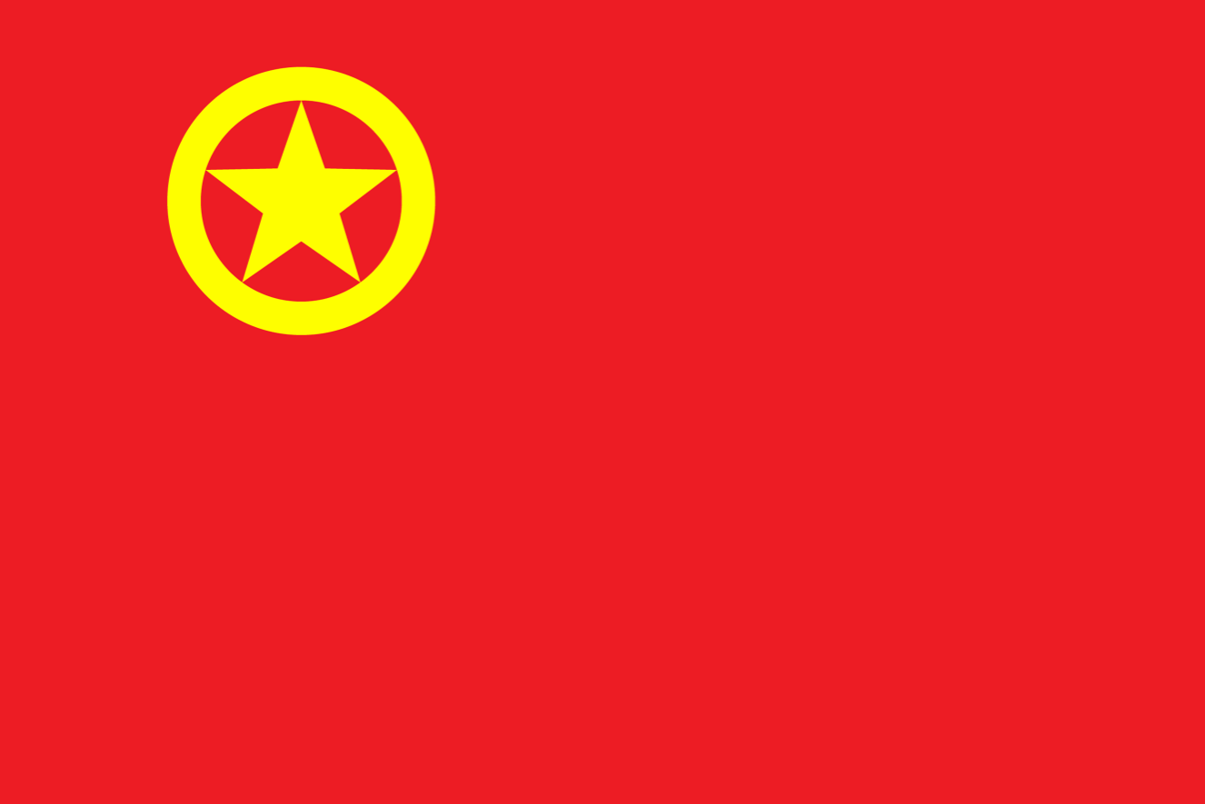 中国共产主义青年团团旗旗面为红色,象征革命胜利;左上角缀黄色五角星,周围环绕黄色圆圈,象征中国青年一代紧密团结在中国共产党周围。