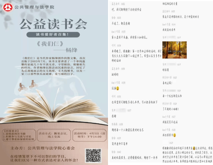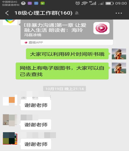 2020年—2022年,先后通过微信群的方式,开设《非暴力沟通》《接纳不完美的自己》线上持续性网络读书小组2期,引导对心理学感兴趣的学生利用碎片时间了解心理学,营造自我关爱、自助成长的良好氛围,惠及 160 人。