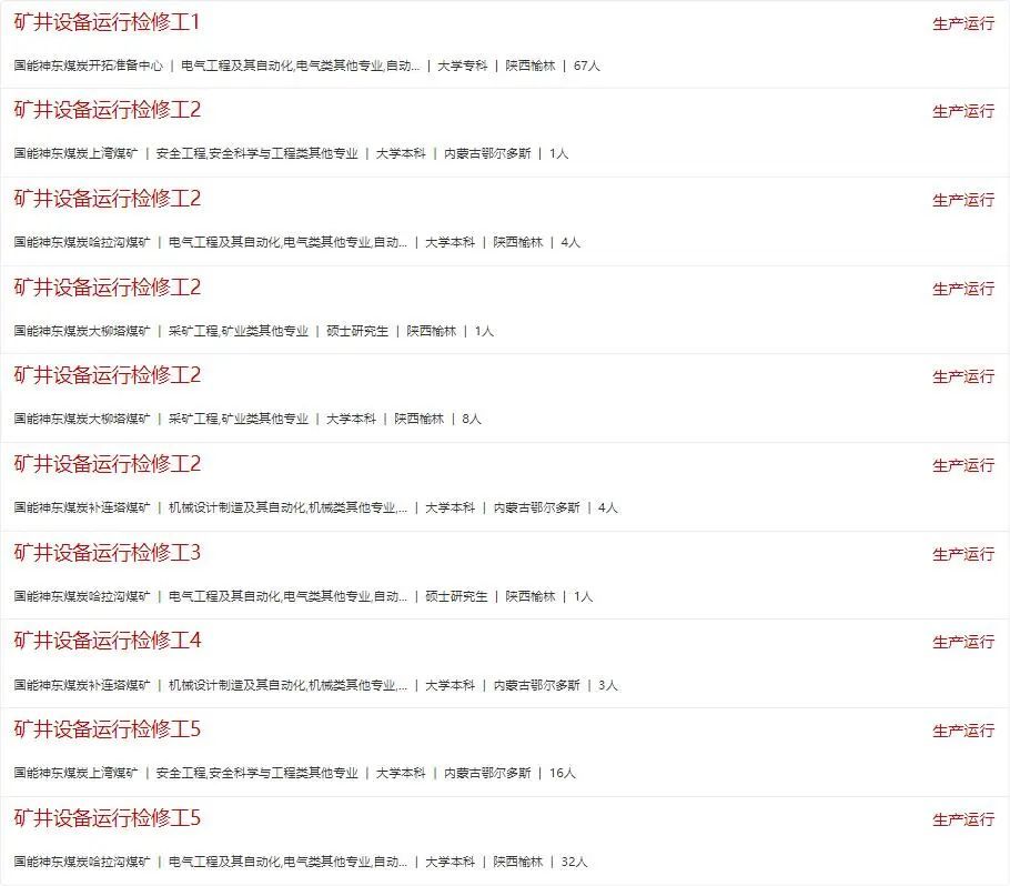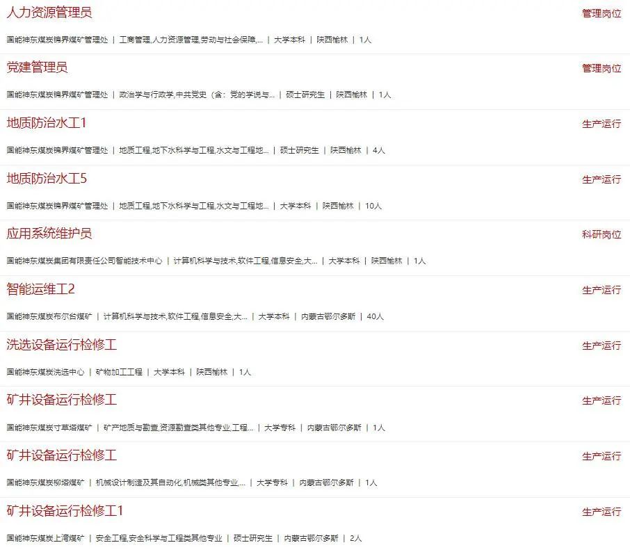 神东煤炭集团所属单位(含杭锦能源)招聘以下岗位,共计339人。